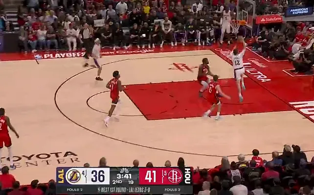 虎扑04月27日讯 NBA季后赛,湖人对阵火箭的比赛正在进行中。